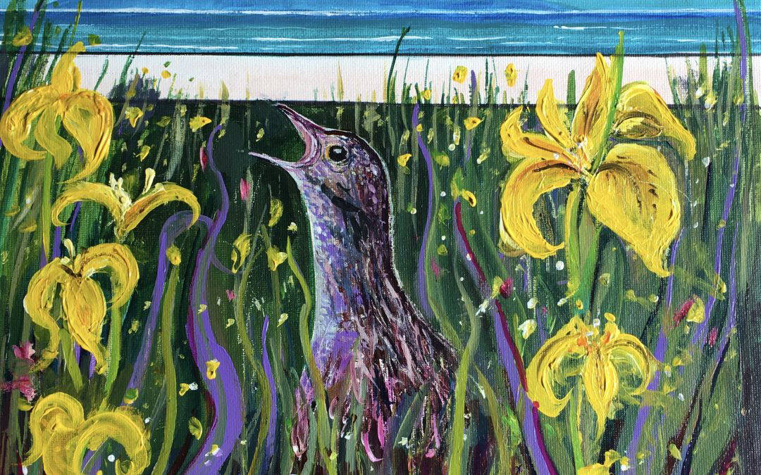 Corncarke in the irises
